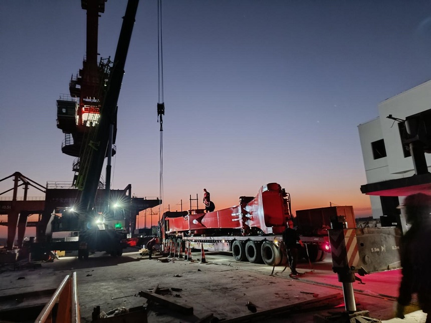 日夜鏖战筑港口装卸力量!邦立重机200吨轨道门座式抓料机浙江码头安装攻坚进行时